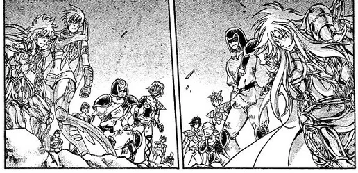 Cuando Shun se entera que la Isla Andrómeda fue destruida por un Gold Saint se puede ver a por lo menos siete Saints, a quienes los derrotaría Milo durante la invasión.