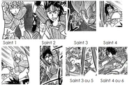 - Nota= Uno de estos Saints viste la misma Cloth que un desconocido Saint que participo en el asalto a la catedral en Italia y posteriormente se enfrento a Pharaoh de la Esfinge durante el siglo XVIII.