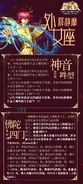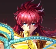 - Al abandonar el Laberinto de los Dioses él es el primer Santo de Oro de hace 243 que puede ver al comatoso Seiya de Pegasus, además cuando la distorsión espacio temporal del mismo laberinto provoca que sean absorbidos se convierte en el único Santo de su generación en poder ver a las almas de los Doce fallecidos Santos de Oro que acudieron para proteger a su Diosa; jurando en ese momento heredar su voluntad y proteger a Athena a toda costa, aún sabiendo que no es la Diosa de su tiempo.