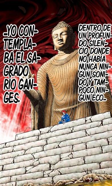 Como parte de su entrenamiento Shijima fue a entrenar en el Ganges pasando mil días de ascetismo estando inerte, lo que Shijima buscaba con ese entrenamiento era escuchar a Buda y a los dioses pero no recibió respuesta alguna, en medio del entrenamiento Shijima al ver pasar todos los días cadáveres por el Ganges se cuestionaba del sentido de vivir, porque nacemos si vamos a morir ya que al final la muerte lo unificara todo. Pero por estar tanto tiempo inerte perdió el sentido del oído sin percatarse de ello hasta que termino su entrenamiento, pero a la vez Shijima quedo frustrado por haber aprendido absolutamente nada en su entrenamiento.