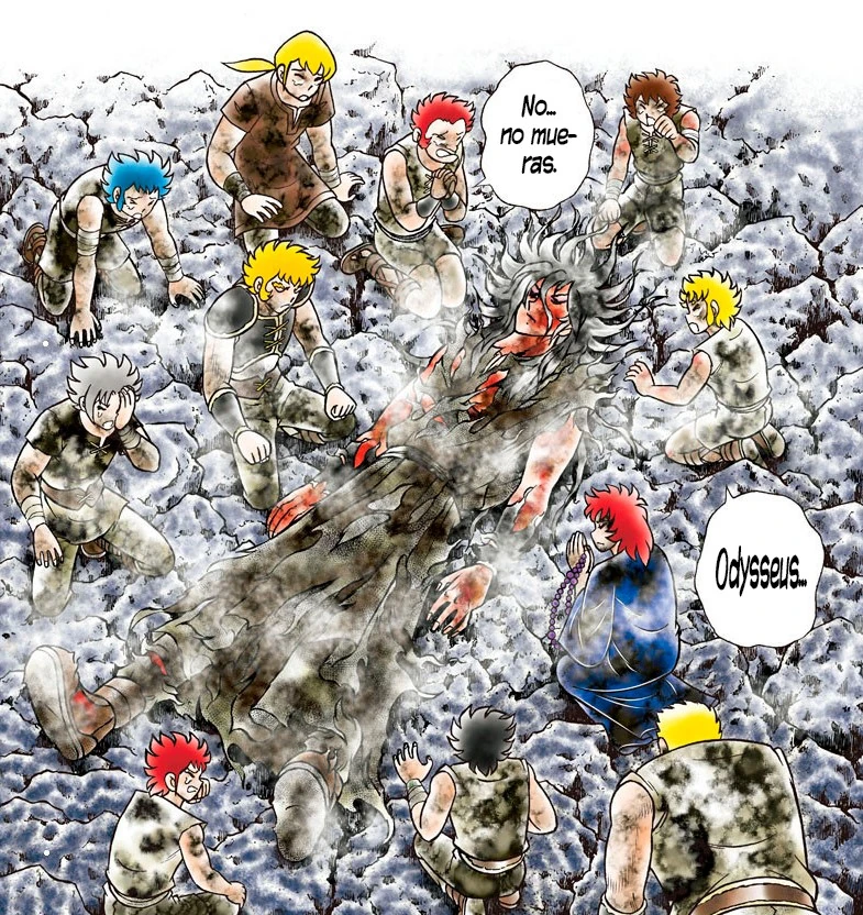 Shijima y el resto de aspirantes a Santos de Oro se enteraron que dos aprendices a Santos de Bronce se desmayaron en una isla que pronto hará erupción, Odysseus inmediatamente fue a salvarlos y logro sacarlos pero en el intento Odysseus recibió impacto de la erupción de la isla y todo su cuerpo quedo llenísimo de heridas perdiendo toda su belleza, pero Odysseus le dijo a Shijima y los demás que no lloren su trabajo es ese. Tiempo despues Odysseus se preocuparía mas por las personas del Santuario a tal punto que dio su sangre a todos para salvarlos de diferentes enfermedades a Santos, soldados, etc. Para que estén en perfectas condiciones en la futura guerra contra Hades y así Odysseus fallece. Shijima estuvo presente en el funeral de Odysseus junto a las otras personas ayudadas por Odysseus.
