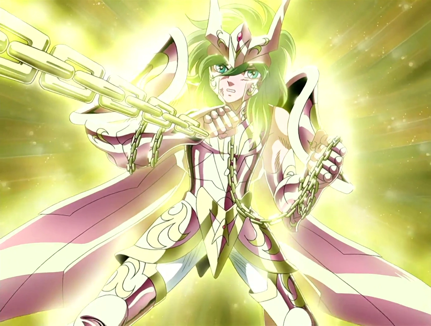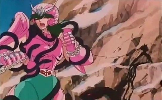 Además de esto, también despierta su séptimo sentido y su Cloth de Andrómeda se transforma temporalmente en una Gold Cloth.