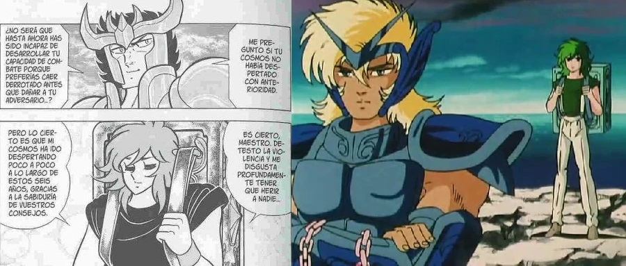 Un detalle adicional es que Shun en dichas adaptaciones suele recurrir mucho a la frase "Hermano, sabía que vendrías", llegando incluso a convertirse en un cliché. Sin embargo, Shun solo diría esa frase una vez canónicamente en el manga de Next Dimension al ser rescatado de Lascoumoune. Esto podría ser considerado como un guiño de Kurumada a dichas escenas inventadas por Toei.