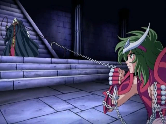 Shun atrapa a Io con sus cadenas