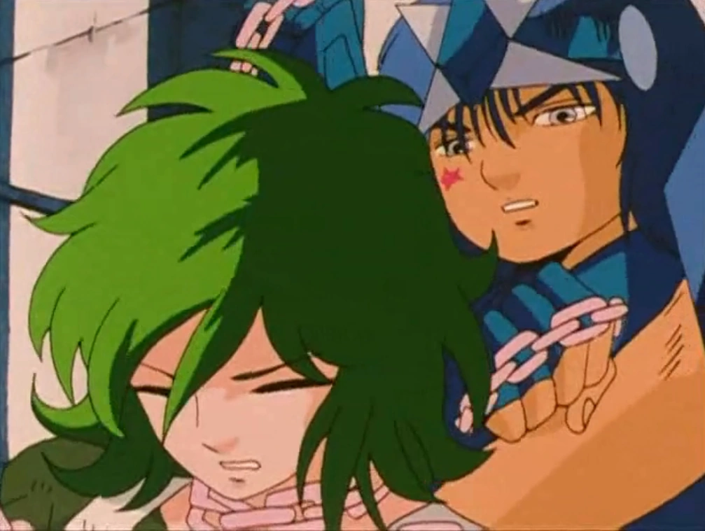 niendo su cadena sobre el cuello de Shun. Shun se levanta diciendo que quiere volver a ver a su hermano lanzándose sobre Spica al que deja fuera de combate.