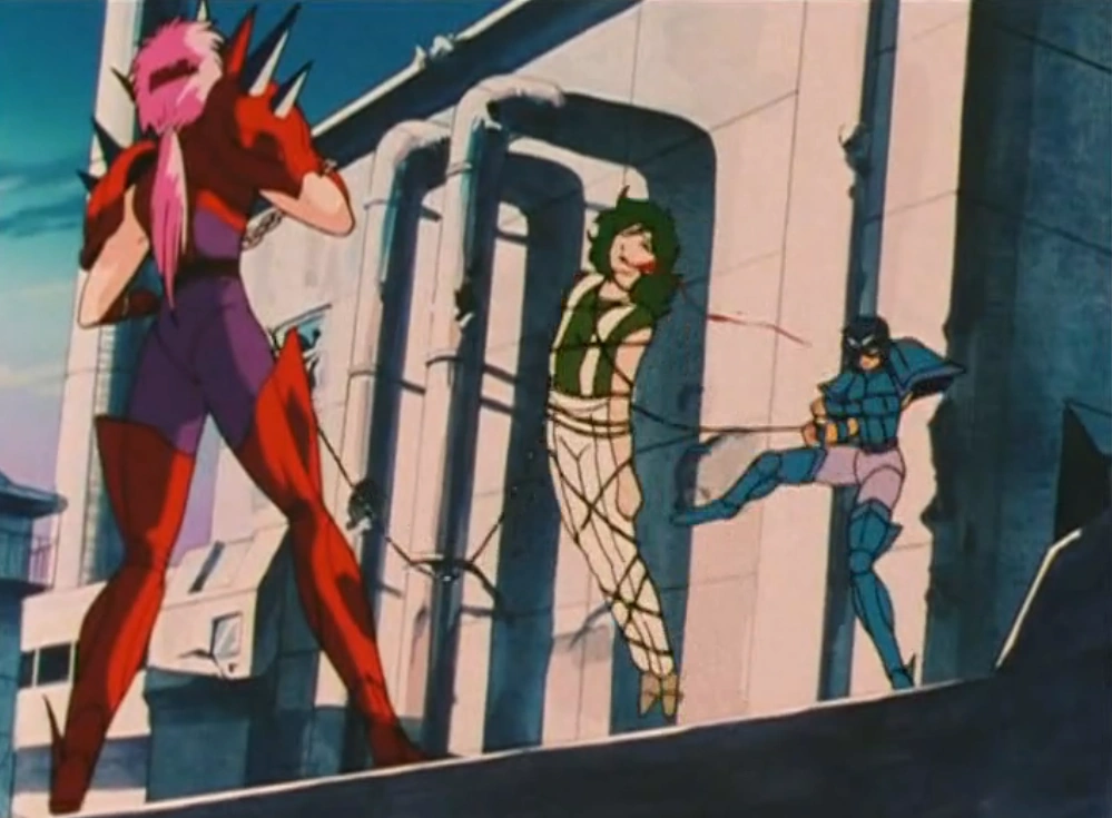 Spica y Reda se lanzan contra Shun, pero es este quién se libra de ambos tras derribarles con las cadenas con las que se había quedado de la mano. Spica recibe una patada de Shun en la boca provocándole una herida. Esa es su última aparición, después no vuelve a aprecer nuevamente.