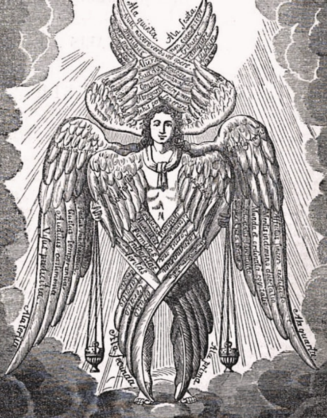 - Iconográficamente se representa esta Surplice haciendo referencia a un Serafín, que dentro de la teología cristiana son los más elevados dentro de la jerarquía angelical.