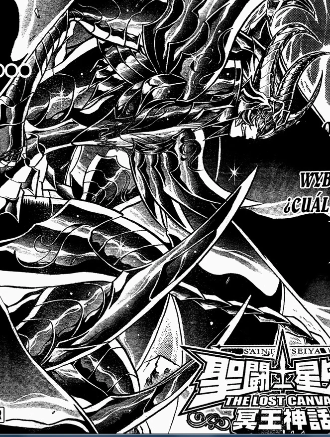 Su deber, en el campo de batalla, es por el ejército de Hades… ¡Es por el señor Hades! ¡¡Porque para él, la Guerra Santa recién ha comenzado!! Ahora, es tiempo de atrapar al caballero que se le escapó. Pero, ni bien se ha dado la vuelta, una voz desde el techo del salón le ha preguntado si de verdad cree en la “utopía”. ¿Acaso es eso lo que utiliza como suministro de poder? Kardia ha regresado en un estado lamentable, sin casco, lleno de heridas y con sangre en la boca pero… sonriente. Radamanthys se ha quedado callado por un momento antes de responderle al “insecto” si cree poder derrotarlo en ese estado… Además, él también es igual. ¡Como caballero está peleando por el ideal de Athena hasta el final! ¡Ambos están sacrificándose para poner la primera piedra hacia la victoria! Pero Kardia se ha dirigido a él como si estuviera hablando con el hombre más fuerte del mundo, y le ha respondido que él está viviendo de acuerdo a sus presentimientos. Llegó al templo en el fondo del mar planeando tener un enfrentamiento con él. ¡Sabía que algo así sucedería porque lo presintió! Algo dentro de la “misión” le hacía hervir la sangre y lo llamaba hasta ese lugar. El Juez ha hecho una mueca agresiva, sus palabras lo han incomodado y le ha respondido con dureza que no puede entender a un sujeto como él, que cree que esa es la mejor manera de vivir. ¡Él no es un guerrero! ¡Tan sólo es un inmaduro egocentrista! ¡¡Y es por eso que ahora atravesará su corazón!!
