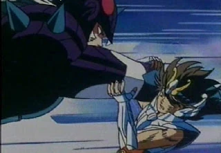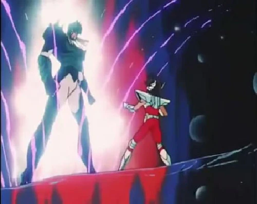 La supremacía del Dios Guerrero es amplia y el Pegaso es golpeado fuertemente en varias ocasiones. Más tarde y, gracias al apoyo de Marin, logra levantarse y derribar a su rival. A pesar de ello, la ventaja permanece con Thor, quien golpea y lanza a Seiya de Pegasus por un precipicio, siendo salvado por Shiryū. El Pegaso le pide a su amigo que siga adelante, mientras él continúa la lucha, pero la desventaja es notoria y cae nuevamente vencido.
