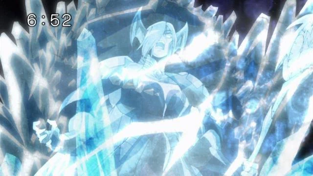 Tokisada usando Chrono Immortal con el puño congelado por Hyōga.