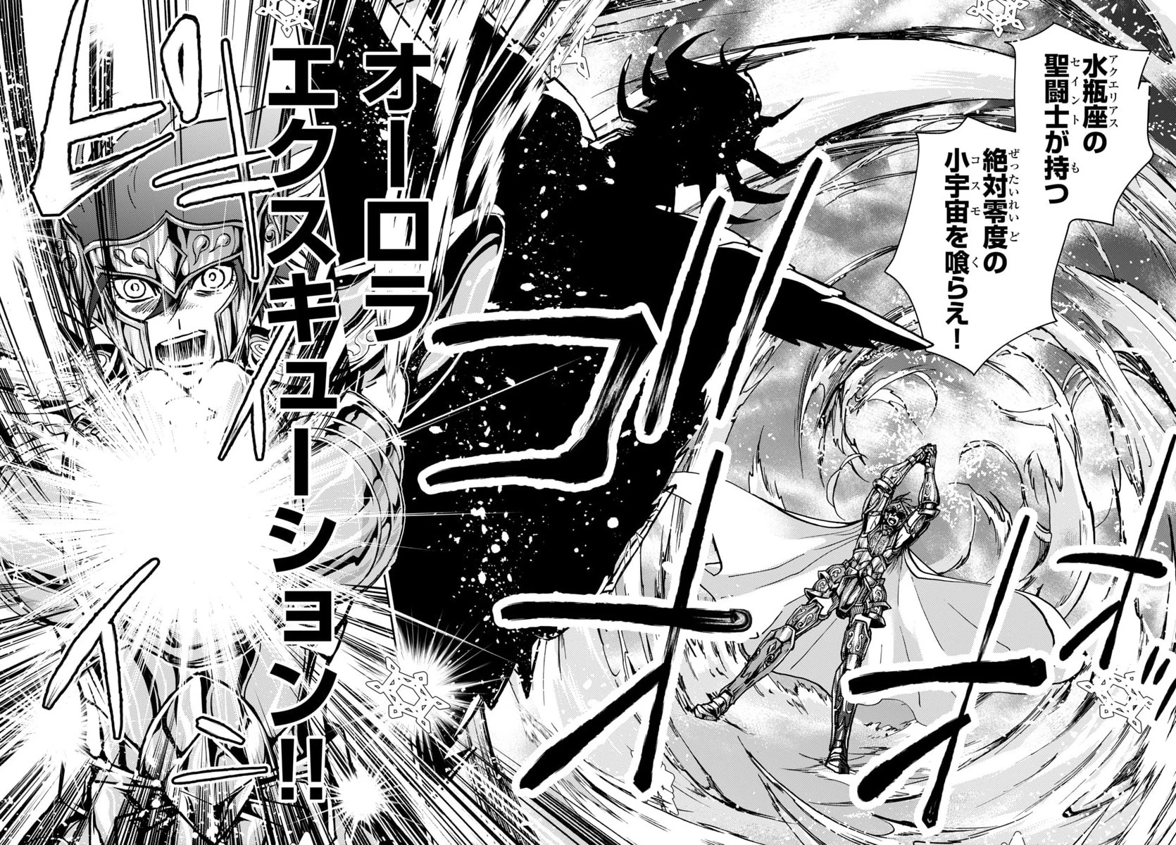 - Cero Absoluto: Su cosmos emite un aura gélida que alcanza el cero absoluto, la temperatura en la que toda la materia deja de moverse y queda congelada [13][14].