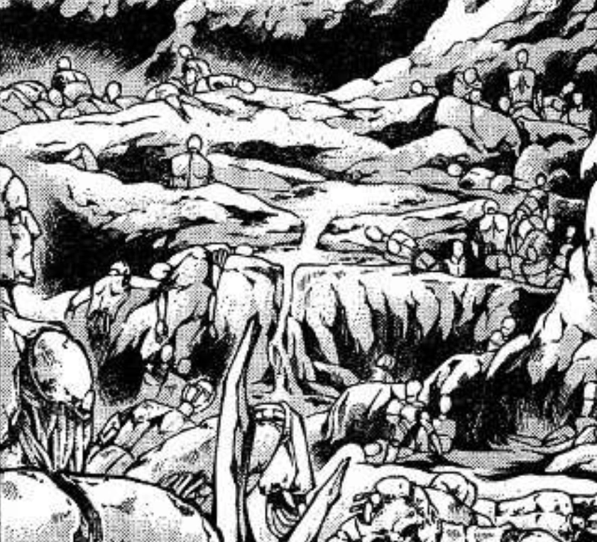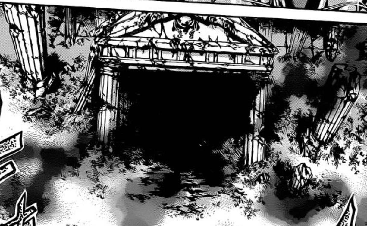En la parte más profunda del volcán, se encuentra un espacio tan grande y alto como un anfiteatro, ahí es donde se encuentra el templo subterráneo en el que el Cosmos de Typhon se va despertando poco a poco y suelta rugidos que provoca vendavales en la zona. En la zona más alta se encuentra un altar de piedra donde se encadena a los sacrificios para el dios de los Gigas.