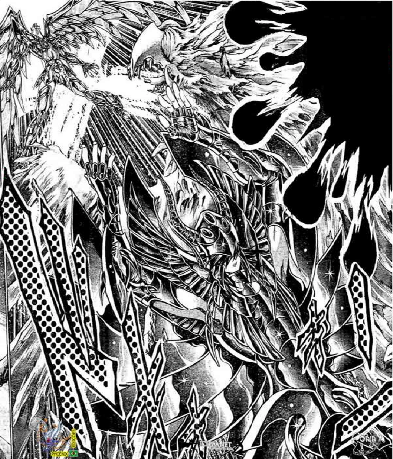 A ação retorna em Lost Canvas. Sísifo mostra a Aiacos o poder do barco da esperança, dizendo que a força entre os laços dos cavaleiros tornou aquilo possível. O espectro fica estarrecido ao ver que aquele barco de madeira velho agora reluzia como ouro. Nesse momento podemos ver Tenma empunhando uma bandeira com o brasão de Atena. O Pégaso pede para que Yato navegue o barco, afinal, se ele tentasse guiar o barco, ele provavelmente o mandaria direto para uma parede. Mesmo relutando, o Unicórnio aceita. Aiacos resolve contra-atacar, mostrando o que ele entende como laços. Ele então chama um de seus subalternos e toma-lhe o espírito, matando o espectro. Ele usa o poder de seu soldado para disparar o Conquistador de Indra. Um raio flamejante é disparado, passando perto do barco que voa nos céus, mas o raio se desfaz em vários outros, como uma chuva de penas flamejantes devastadoras. Quando os raios estavam prestes a atingir o barco, surge Sísifo que, com milhares de flechas de luz, impede qualquer impacto, fazendo assim ele e Aiacos ficarem frente a frente novamente.
