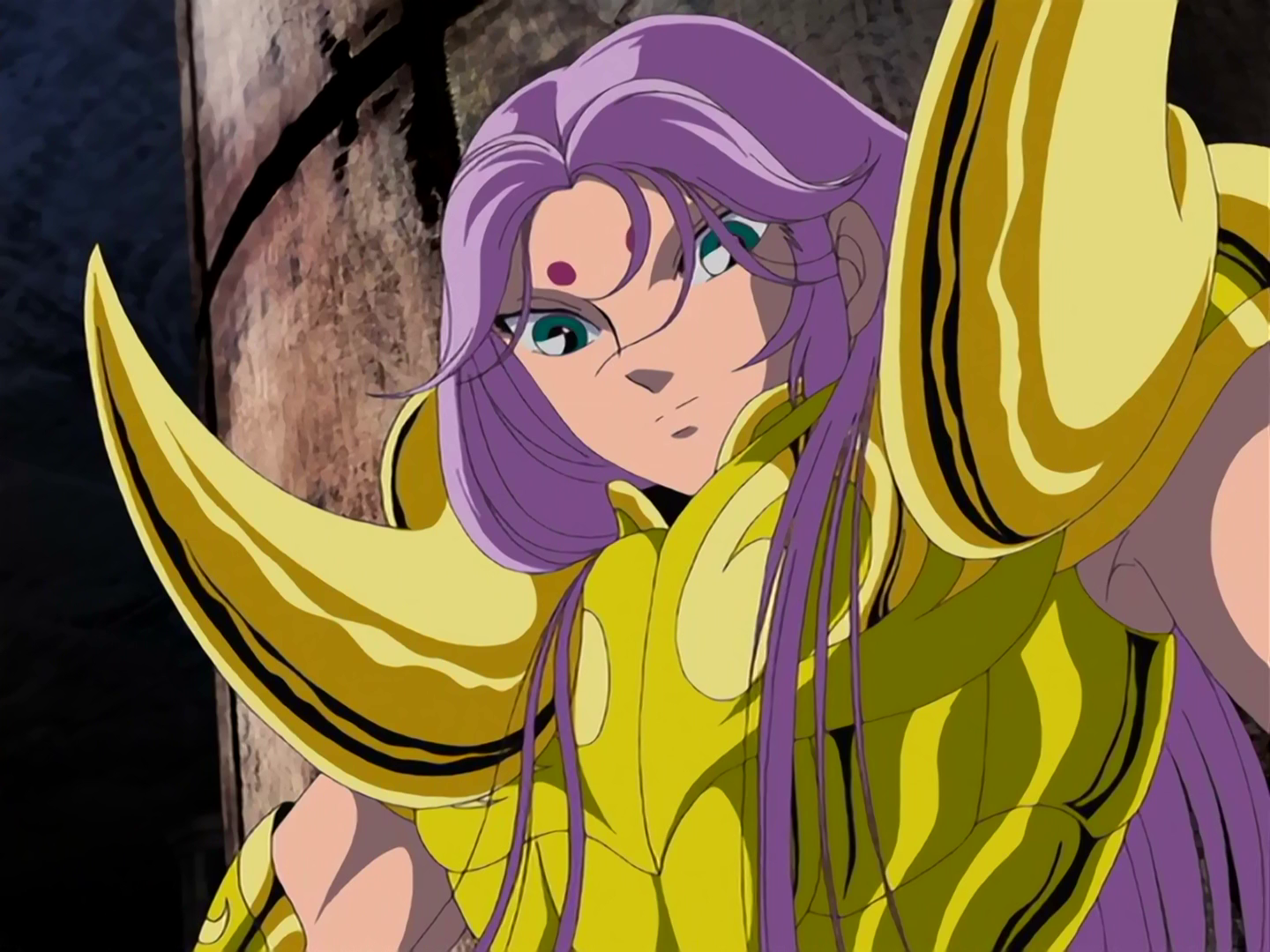 Após a Batalha das Doze Casas, Mu restaura as Armaduras de Bronze com o sangue dos Cavaleiros de Ouro (Aldebaran, Aiolia, Mestre Ancião, Milo e Shaka).[14]