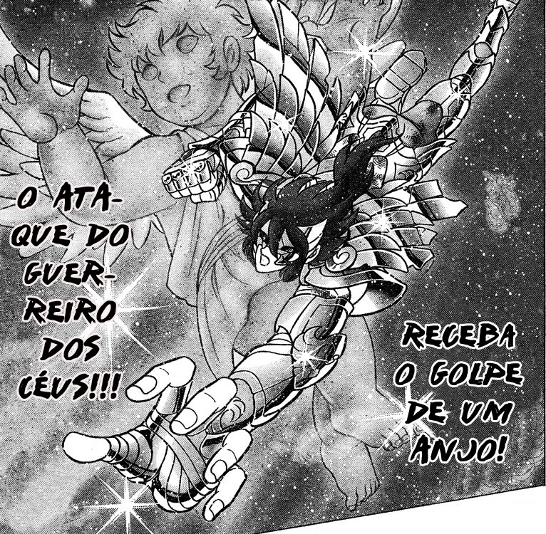 | Tohma ganha os ares, concentrando toda a cosmo-energia no punho, desferindo um ataque de terrível poder destrutivo. |