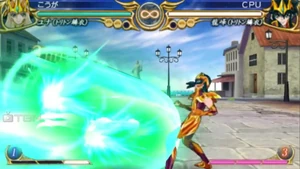 | Yuna realiza um giro com suas pernas, disparando fortes rajadas de vento que vão na direção do oponente. |