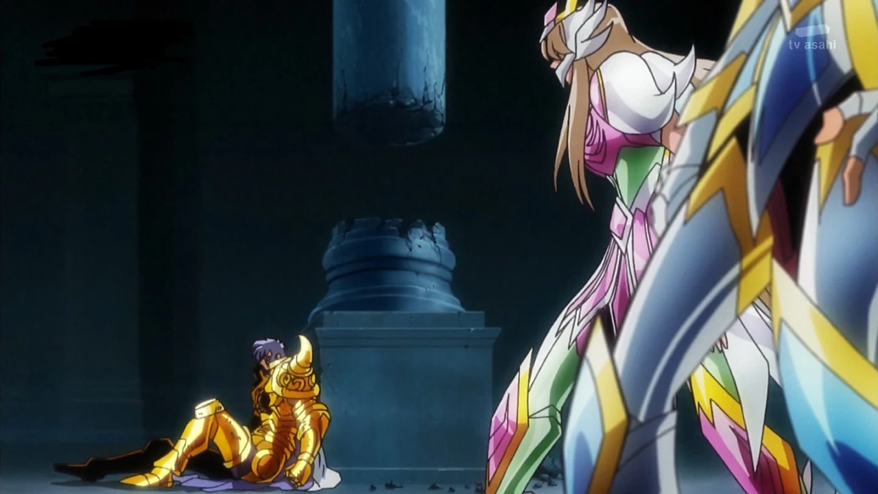 deve lutar sozinho e mesmo assim vencer, Subaru se irrita e parte para cima de Hyperion, fazendo seu Cosmo das Trevas surgir novamente, se equiparando ao poder do oponente, atacando-o. Subaru tem a visão do deus inimigo, que esta por trás de Pallas, deixando-o desnorteado, abrindo a guarda para que Hyperion congele seu tempo, usando a Chrono Destruction, mesmo sem sua espada. Os cavaleiros de bronze restantes continuam a luta, mas Hyperion afirma que eles não são rivais para ele e os derruba. Entretanto, Eden decide continuar a luta, a fim de salvar Subaru. Hyperion diz que Eden é tolo, pois sendo filho de um deus e podendo tornar-se um, preferiu lutar do lado dos humanos. Eden ataca Hyperion acreditando na força dos humanos, mas o Pallasito o lança para longe. Nesse momento, Kouga segura Eden e, junto com os demais cavaleiros, decide lutar para salvar Subaru. Todavia, o poder de Hyperion sobrepuja os cavaleiros e