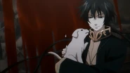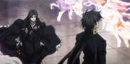 After Yōma and Aspros' dual, Yoma picks his top hat, dropped, and told Alone that it is now time to move on to the main act of the play. Alone understands that Yoma is referring to his son, Tenma.