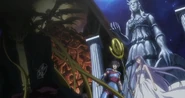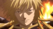 After Rhadamanthys leaves, Pharaoh bows before Alone and presents his plan of carrying out orders and bring back a pile of Saints hearts. Interested in that idea, Alone comments he is looking forward to seeing a bunch of Saints heart with a smile on his face.