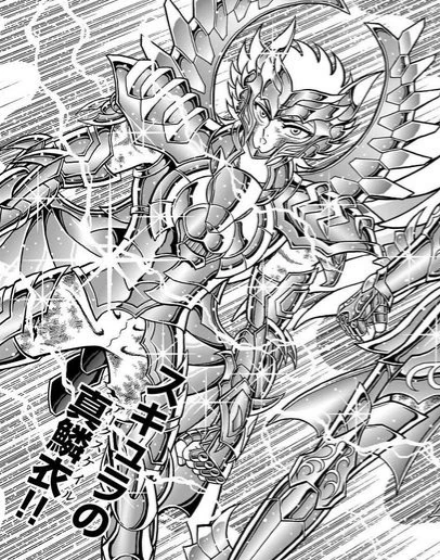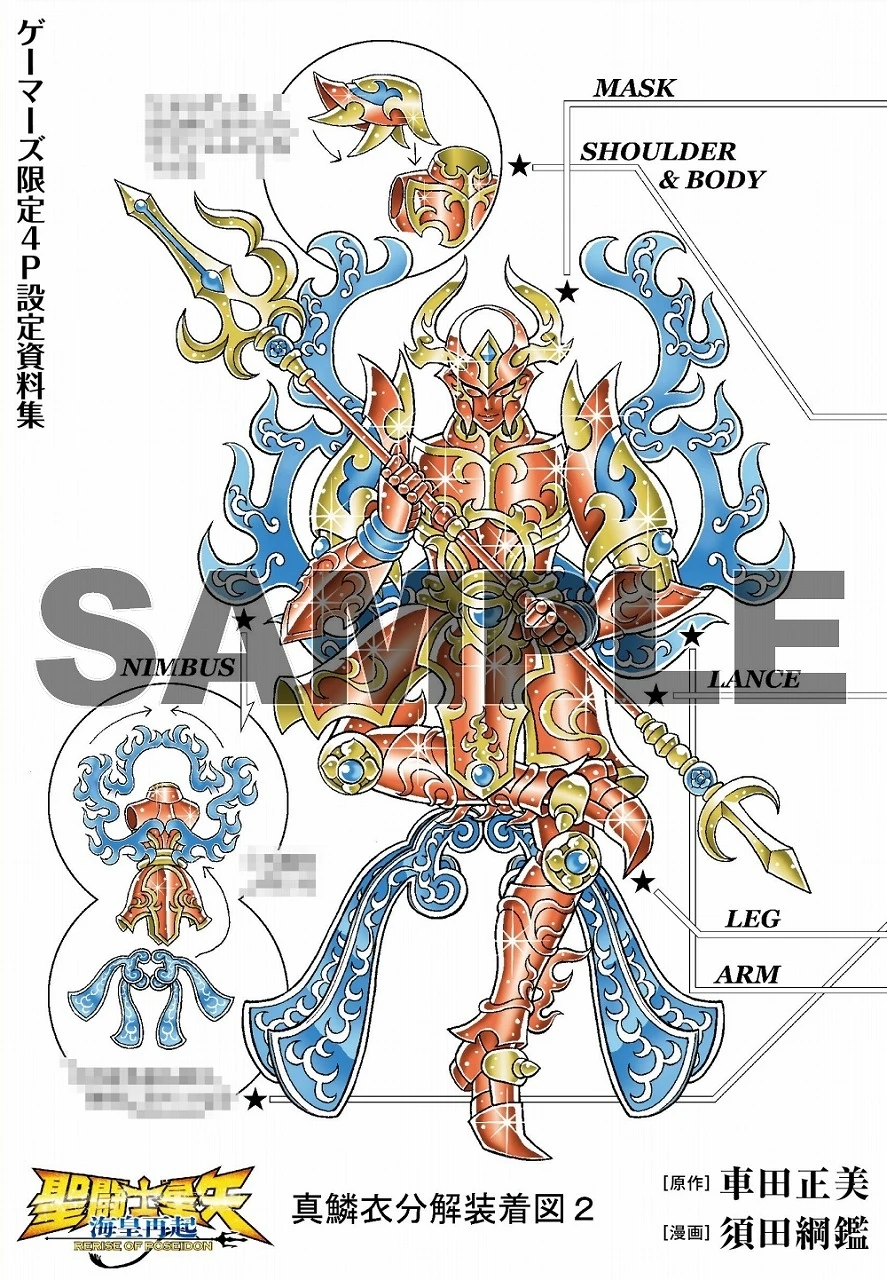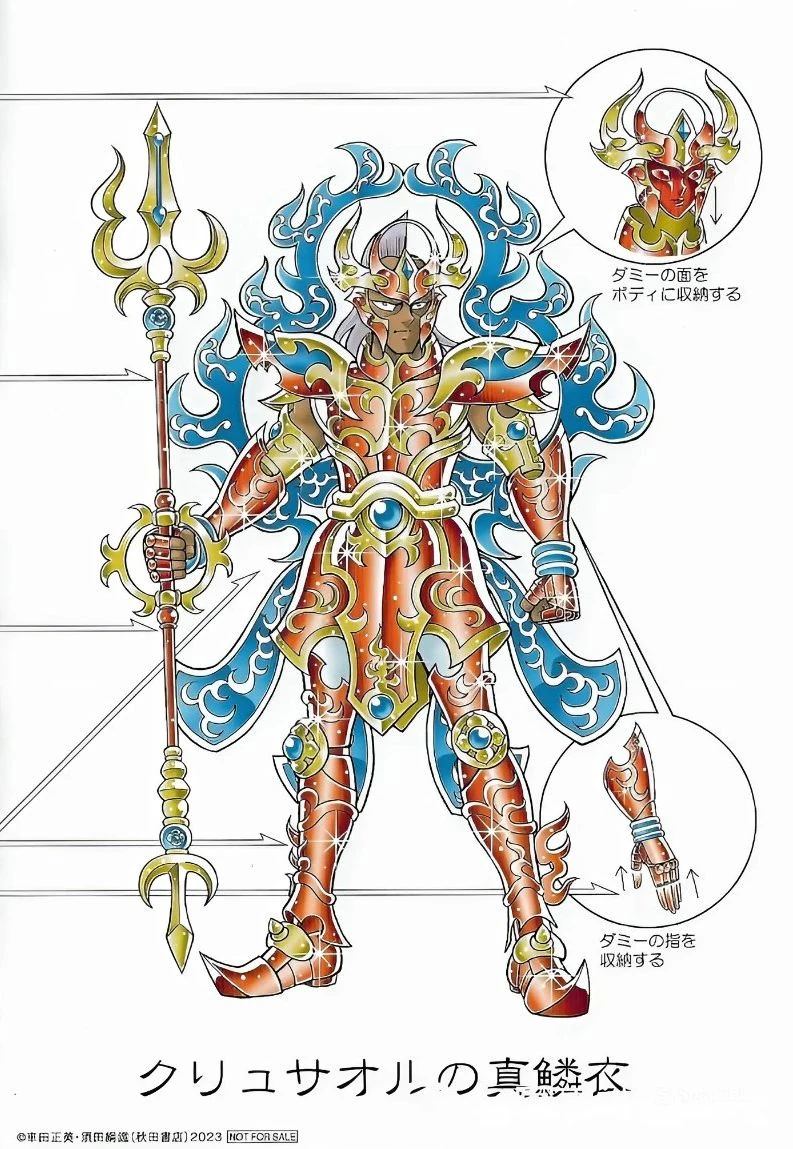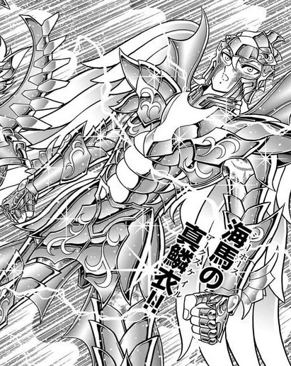 The Scales contain Orichalcum, a metal known in Antiquity as “mountain copper”. In the Saint Seiya universe, it is considered the strongest metal on earth and is labeled “hypermetal” in the Gigantomachia novels. It is most likely what gives the Sea Generals’ and Poseidon’s Scales their golden orange hue. It is unknown if Orichalcum is the only component or if it is part of an alloy, but the difference in defensive abilities among the armors would seem to indicate that stronger Scales contain more of it. There is no information regarding the potential ability of the Scales to either heal or evolve and no indication that they may even be alive. They appear devoid of Pandora boxes as they were simply store in object form in Poseidon’s Temple. Nevertheless, there is no doubt they saw more than their share of combat, suffering damage during Poseidon’s defeats at the hands of the Saints. Yet when Kanon discovered them in Poseidon’s Temple, the Scales were in perfect condition. They can therefore at the very least be repaired. Unlike Athena, it appears Poseidon did not place a ban on weapons and the Chrysaor Scale comes equipped with a lance.