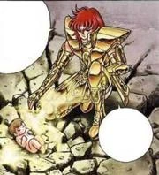 He mentions to Taurus Ox and Capricorn Izō that he has felt Athena's Cosmo from the future, coming near to the time dimension they live in. Soon enough Athena descends to the sanctuary in a crash, the Saints hurry up to Athena's statue at the top of Sanctuary where the Goddess Cosmo impacted. There they find an infant Athena sleeping in a small crater. Shijima goes forward and is about to pick up the goddess when the Pope appears telling them to step back. As the pope picks the baby up in his arms he orders the Gold Saints to return to their temples. On the way down, Shijima senses something bad and heads back to Athena's statue, where the Pope is about to stab the baby Athena with a dagger. Shijima pulls the baby away and at the same time Pisces Cardinale appears. The Pisces Saint first questions the Pope's wrongdoings but attacks Shijima with a deadly Bloody Rose, making Shijima fall to the ground, who later recovers and flees to protect Athena. He is currently between the Pope's chambers and the Pisces temple.